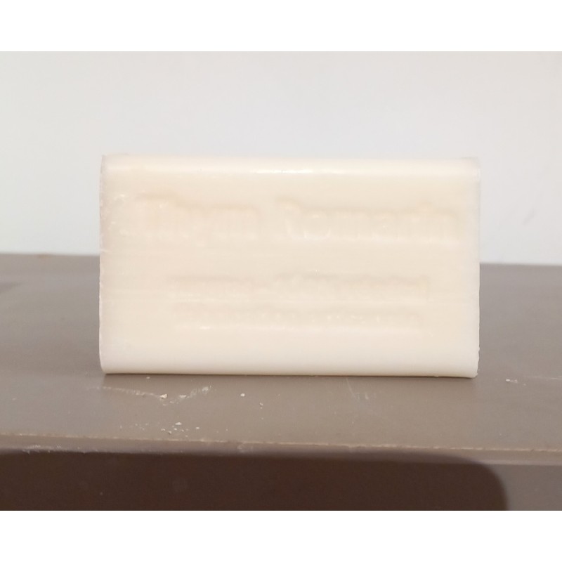 aux huiles essentielles de thym et romarin .fabriqué avec nos produits , à la savonnerie de sault .composition:sodium olivate, sodium cocoate, sodium stearate, aqua, butyrospermum parkii oil*, rosmarinus officinalis leaf oil, glycerin, thymus vulgaris